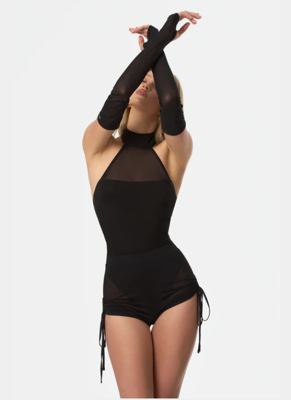 Danza x Veronika Collection:  Make a striking impression with the Adriana Bodysuit. Featuring a sleek halter neck and delicate mesh detail on the neckline, this sleeveless design exudes confidence and sensuality. Perfect for turning heads on the dance floor or during a night out, it’s made to highlight your bold and magnetic presence. Sleeves sold separately or as a 3 piece bundle.