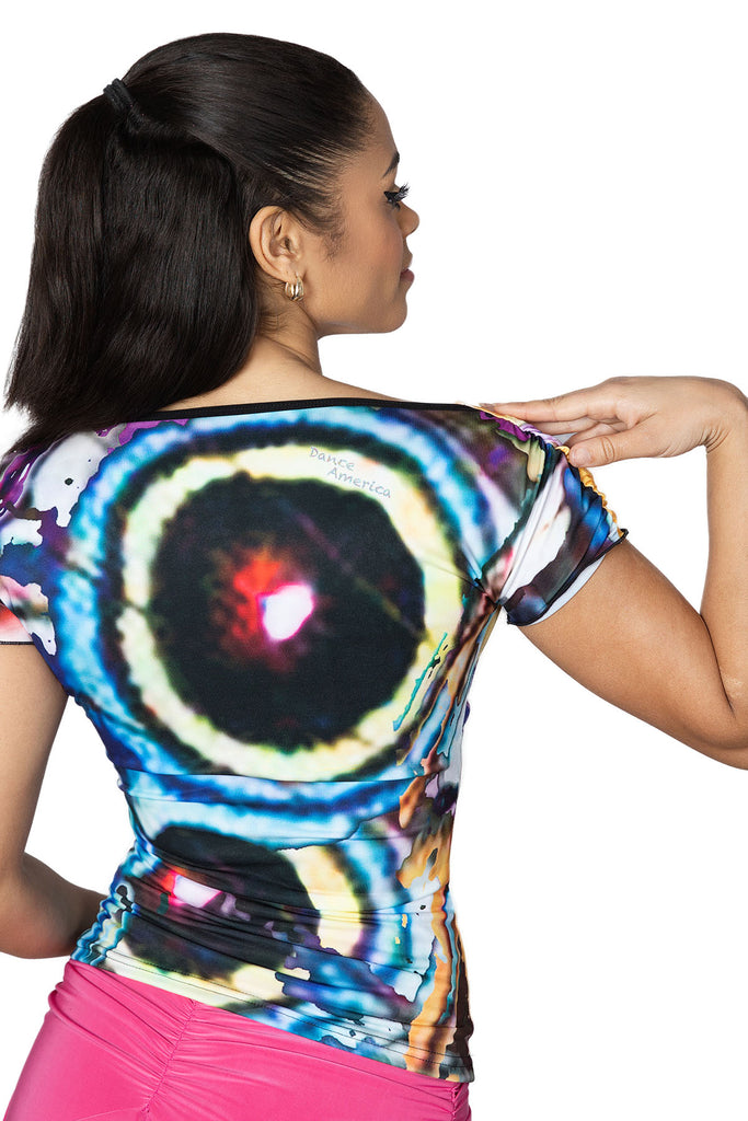 Best Seller! T2406 Cap Sleeved Top with Draped Yoke. Introducing our T2406 Cap Sleeved Top with Draped Yoke - a bestseller that exudes elegance and sophistication. Featuring a draped yoke and cap sleeves, this top is perfect for any occasion. Upgrade your ballroom wardrobe with this must-have piece that will effortlessly elevate your style. Best selling, comfortable, stretch top for dance practice, social dancing, evening wear & events.