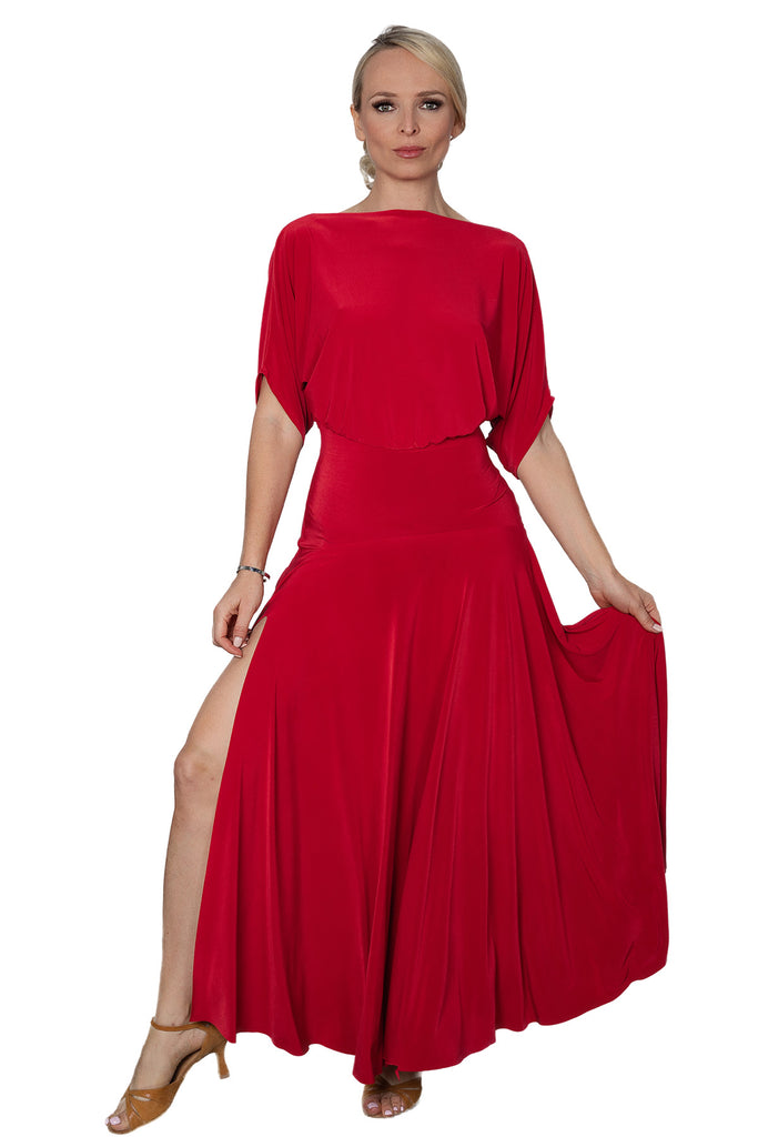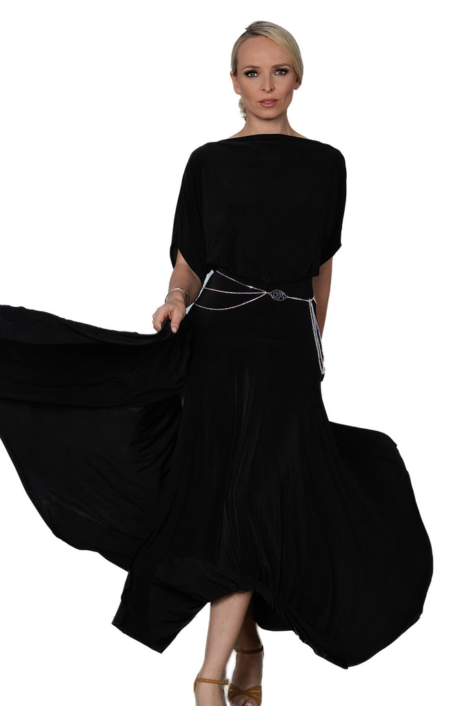 Expertly crafted for the ballroom, the D2402 Simple Long Dress offers a loose top design and a stylish slit in the back for maximum comfort and mobility. Perfect for dancers looking for a simple yet elegant look. A great dress for parties, social dancing, evening wear plus dance medals & competitions. Belt & accessories sold separately.