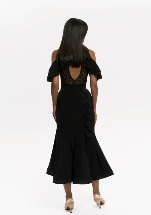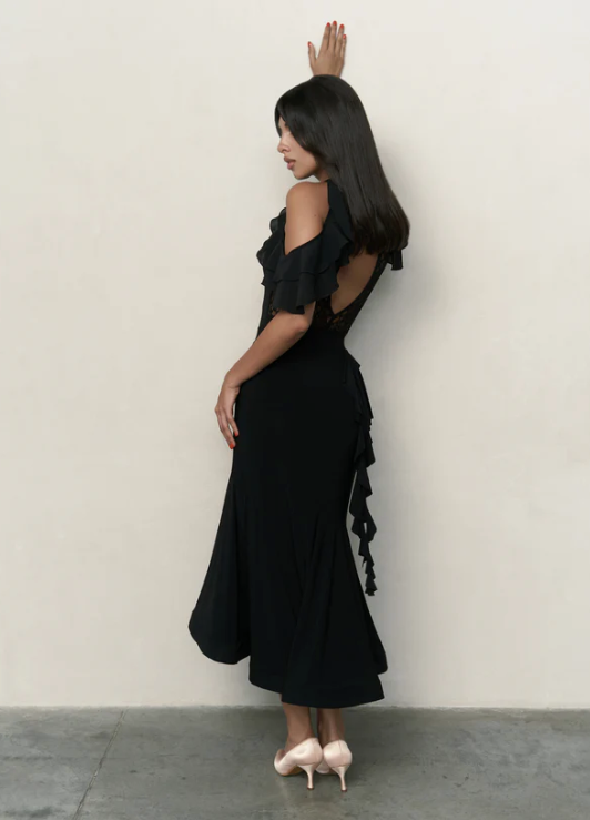 Soft yet striking, the Polly Bodysuit is all about confidence with a romantic twist. Frilled shoulders bring playful volume, while the lace back adds a hint of mystery. It’s the kind of piece that instantly makes you feel beautiful — on and off the dance floor. A great bodysuit for ballroom dancing, evening wear & parties, social dancing & dancesport competitions.