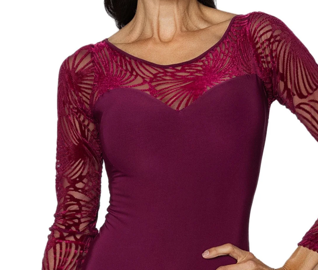 Velvet Leotard Sweetheart Neckline L2410 in Various Colours | Ladies Fitted, Stretch Bodysuit with Long Sleeves for Ballroom, Latin, Tango Dancing & Evening Wear
